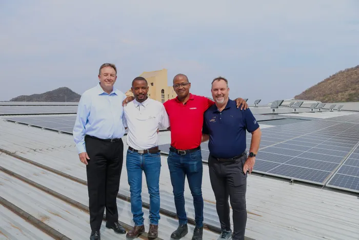 From left, Tsebo Facilities Solutions CEO Aubrey McElnea, Sun City sustainability manager Lwazi Mswelanto, Tsebo’s senior operations engineer TM Lesetla and Sun City general manager Brett Hoppé. Photo: Supplied