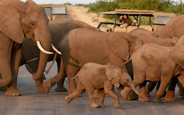 A herd of elephant cross the road infront of tourists in the northern Kruger Park. Poaching of elephant is a growing concern. 050616.Picture: Chris Collingridge/African News Agency(ANA)