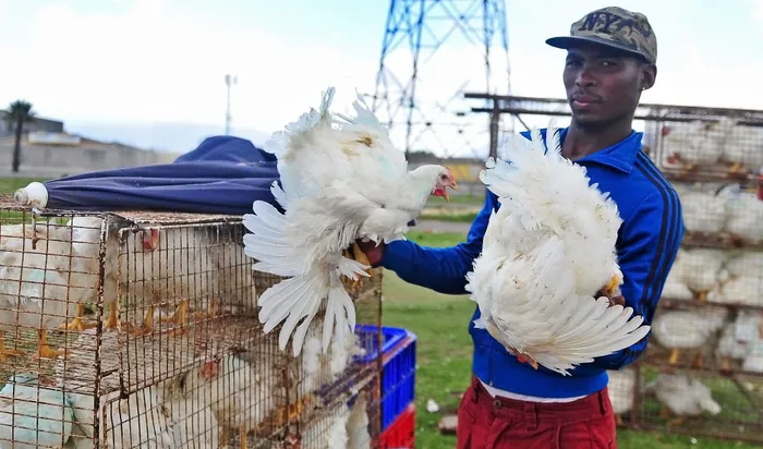 Luvuyo Tshisa from Phillippi sells chicken next to Lansdown roader. Image: Phando Jikelo.