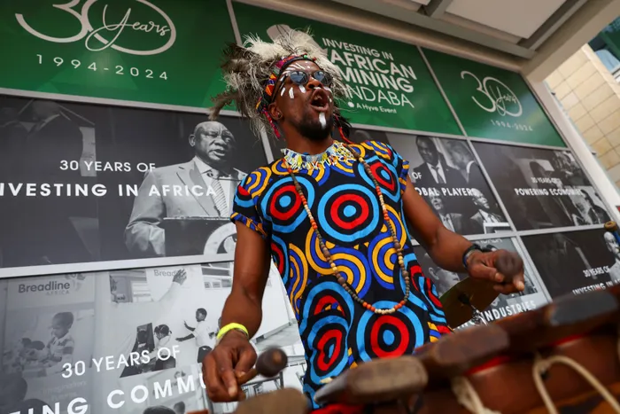 A performer entertains delegates at the Investing in African Mining Indaba 2024 conference in Cape Town, South Africa, yesterday. Photo: Reuters