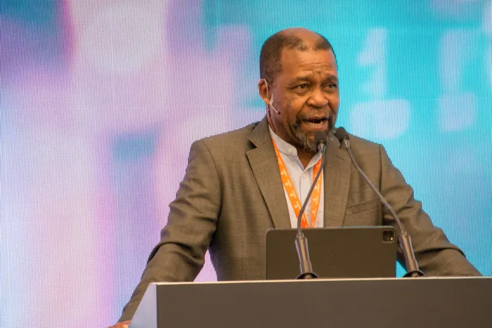 ANC stalwart Joel Netshitenzhe addresses delegates at the launch of the Our Digital Horizon report. Picture: Nicola Mawson/Independent Newspapers