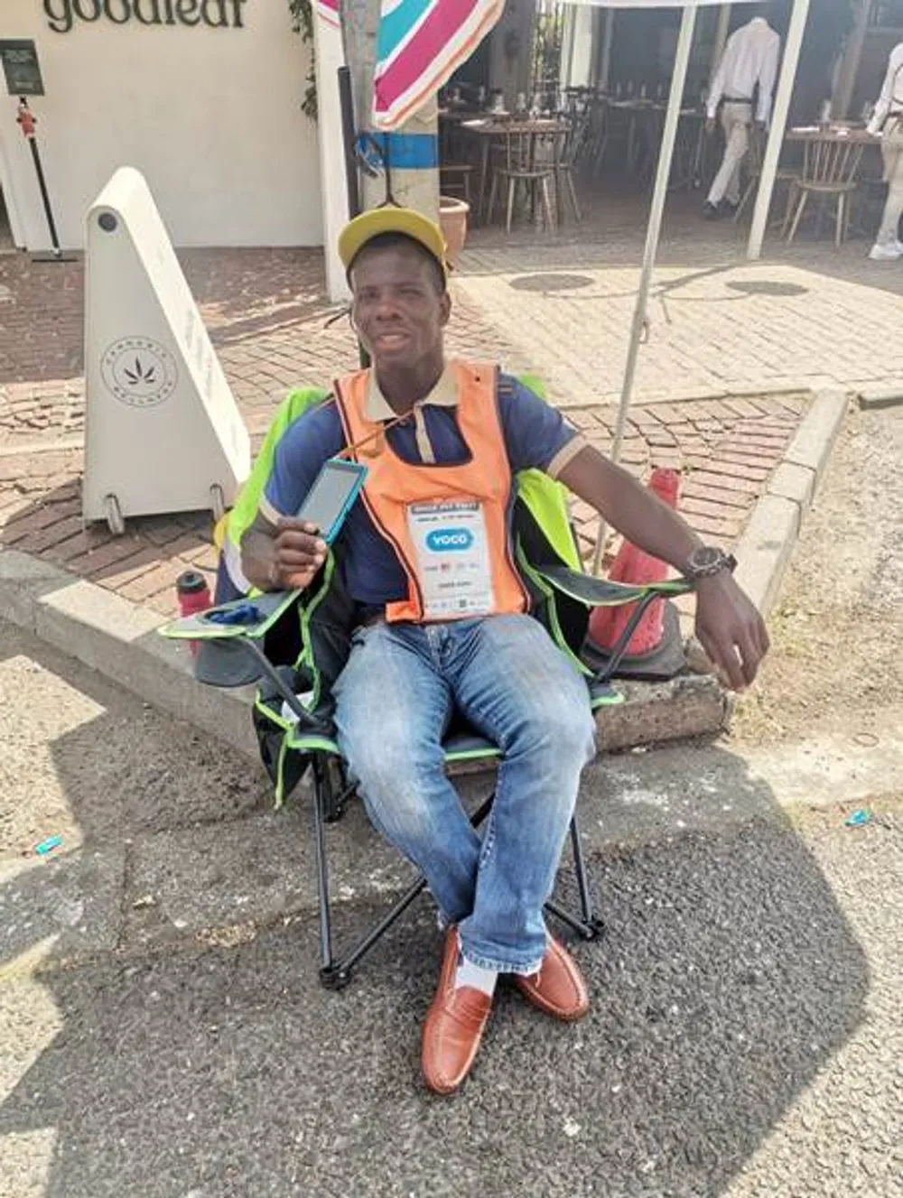Ronny does all sorts of work including guarding parked cars, helping customers offload or pack heavy goods, cleaning up the streets he operates in and even assisting other car guards to get paid through his Yoco Khumo that he got last year November 2021 when it initially came out.
