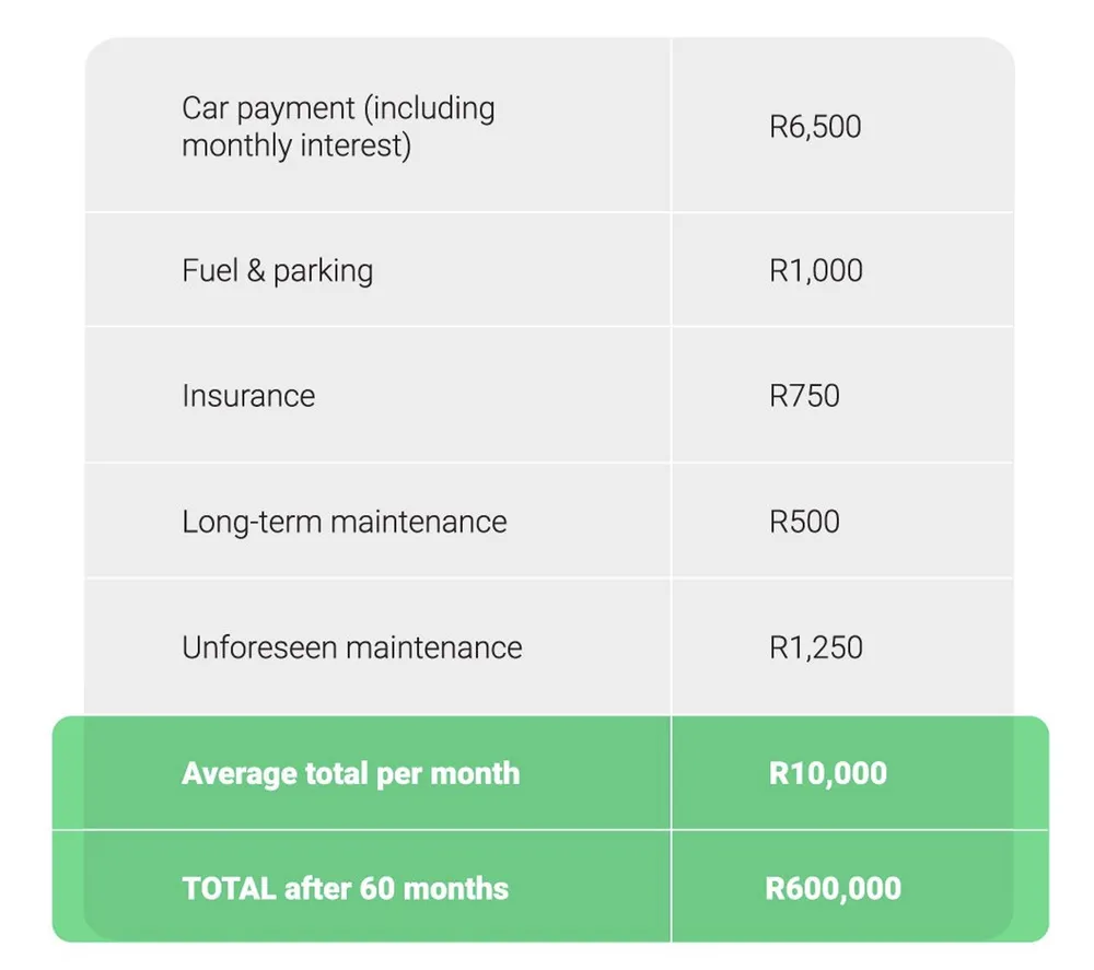 Adding up all of these costs you would need a car budget of about R10,000 a month to own and drive a R300,000 car.