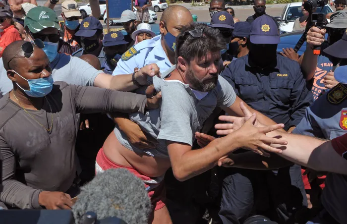 We Are More (W.A.M) movement’s head organiser, Craig Peiser, was detained and arrested by police after he assaulted eNCA journalist Monique Mortlock. Picture: Tracey Adams/African News Agency (ANA)