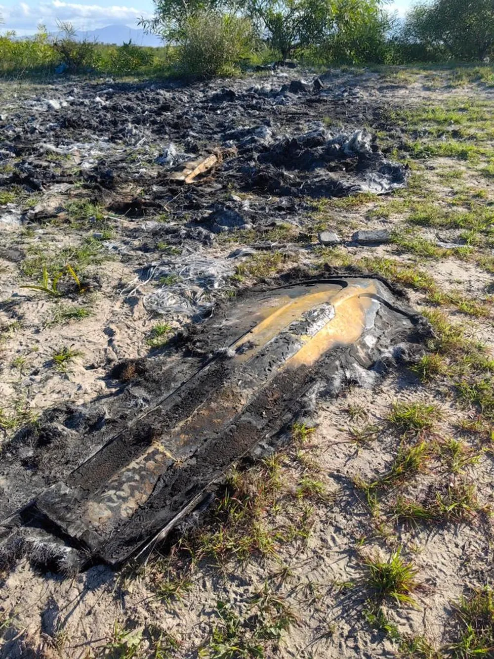 Hours after the picture of the stolen red vessel was circulated, it was found near Blikkiesdorp. Only yellow burnt material and ash remained.