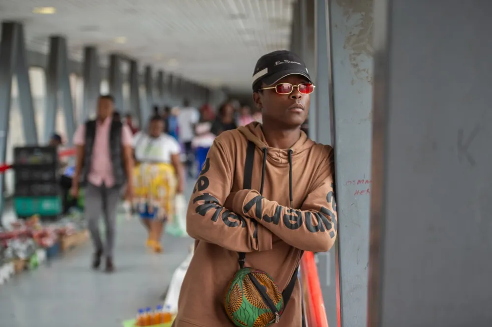 Shoeshiner, Bongani Njovane, 23, has been working on the skywalk for the past four months.