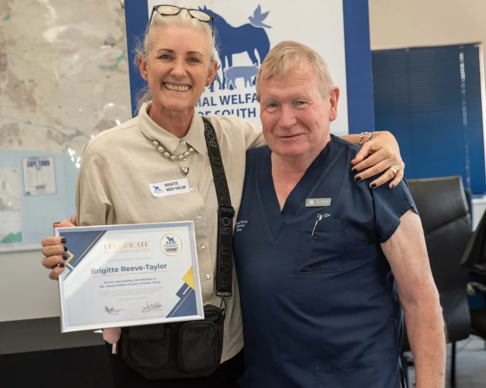 Perrins also honoured mayor Geordin Hill-Lewis, in his absence, for donating R500000 from his Mayoral Fund in July 2022, enabling AWS SA to sterilise and vaccinate 1000 pets.