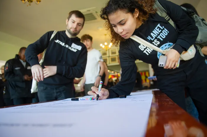 Imaan Hilberg signs the Declaration of Animal Rights at the Hamilton’s Rugby Club in Green Point. Picture: Armand Hough / Independent Newspapers