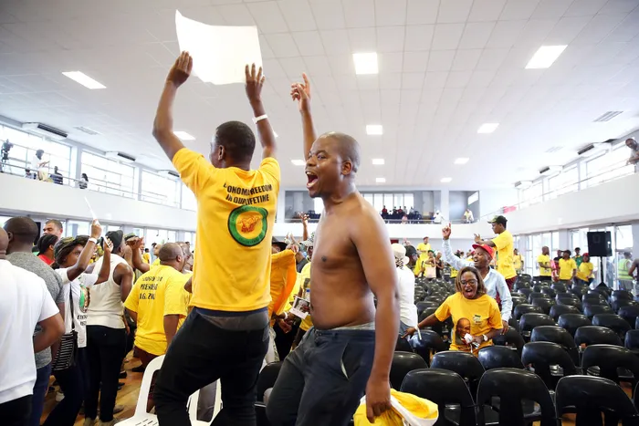 ANC Youth League members repeatedly interrupted a memorial service for late anti-apartheid activist Ahmed Kathrada in Durban. Picture: Reuters ANC Youth League members repeatedly interrupted a memorial service for late anti-apartheid activist Ahmed Kathrada in Durban. Picture: Reuters