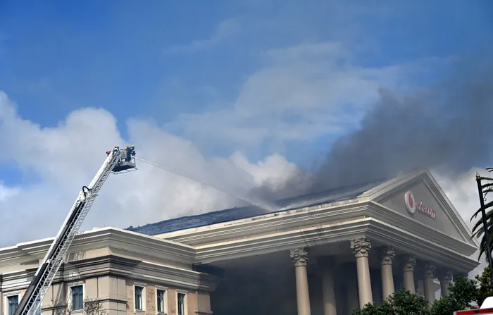 The City’s Fire and Rescue Services personnel were dispatched after being alerted to solar panels alight on the roof of the Vodacom Building in Century City in July. The fire led to the building being damaged. No injuries were reported. Picture: Ayanda Ndamane African News Agency (ANA)