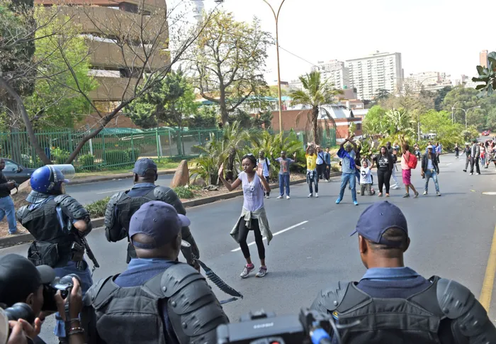 A large group of Wits students protesting against the new fees increase announcement, took to the streets of Braamfontein and Parktown on Tuesday. Picture: Antoine de Ras A large group of Wits students protesting against the new fees increase announcement, took to the streets of Braamfontein and Parktown on Tuesday. Picture: Antoine de Ras