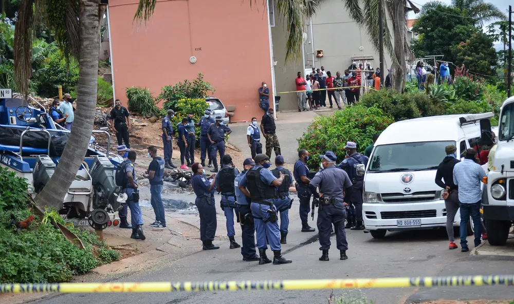 Outraged at the death of Pillay, several people chopped the heads off the two men. The bodies were left outside Pillay’s home at the intersection of Table Mountain and Taurus Street. Rubble, tree branches and planks were placed on them and they were set alight. When police attempted to extinguish the fire bricks and stones were aimed at them.