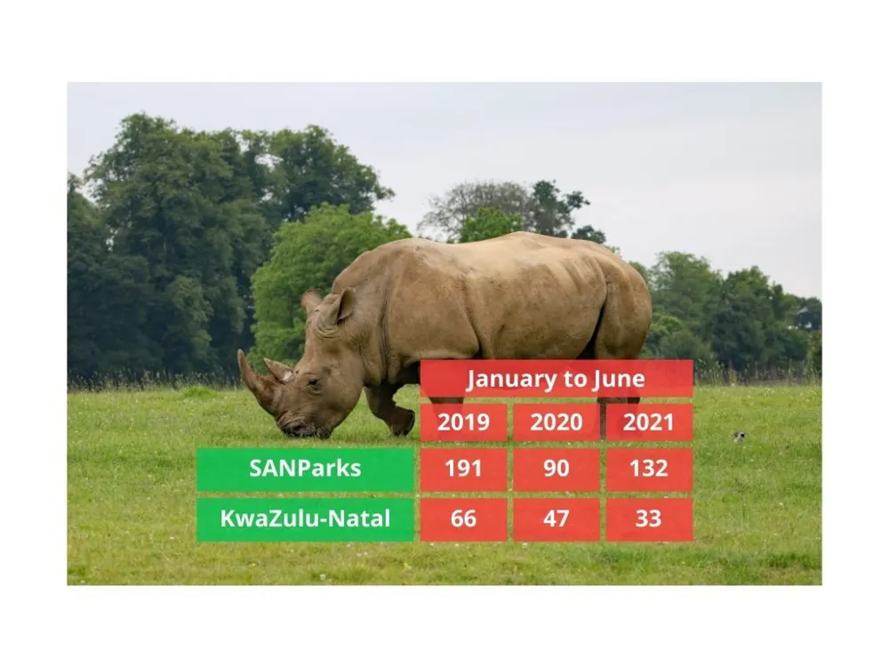 During the first six months, KwaZulu-Natal had seen a decrease in rhino poaching in the last three years and during the first six months of 2021 while the SA National Parks (SANParks) numbers fluctuated.