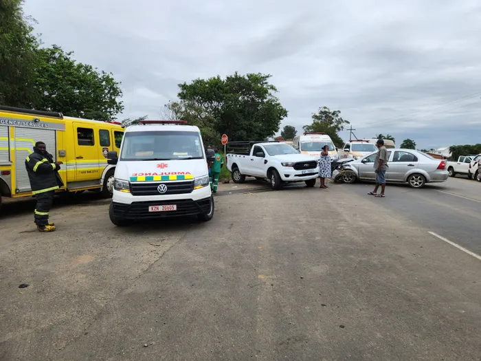 Paramedics responded to the scene of an accident on the R102 between Stanger and Darnall where a traffic officer on duty was struck by one of the vehicles in a collision. Picture: IPSS Medical Rescue
