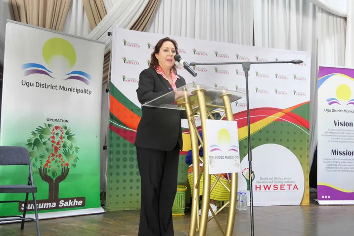 Health and Welfare Sector Education and Training Authority CEO Elaine Brass Health addresses those at the HWSETA. Supplied