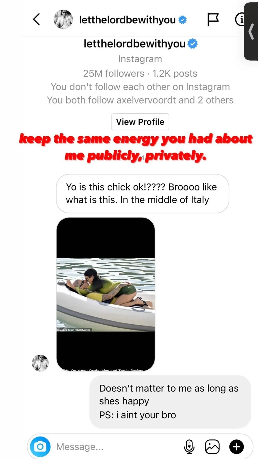 Taking to his Instagram Stories, Younes shared a DM conversation between him and Scott in which the reality star sent a picture of Kourtney and Travis, along with a message that read: “Yo, is this chick ok!???? Broooo like what is this. In the middle of Italy.”