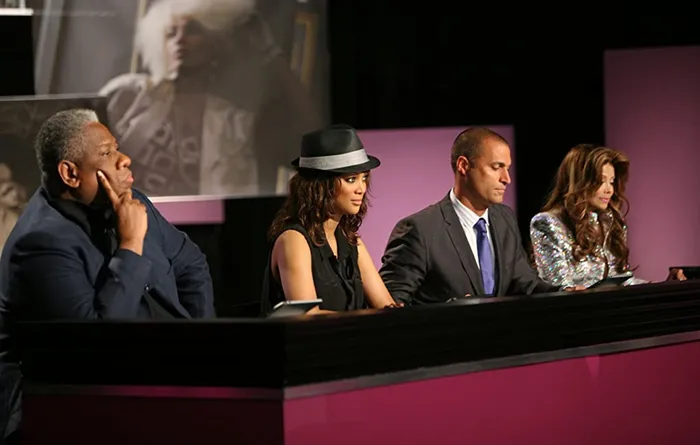 Tyra Banks, La Toya Jackson, André Leon Talley, and Nigel Barker in America's Next Top Model. Picture: Mathieu Young/The CW Network