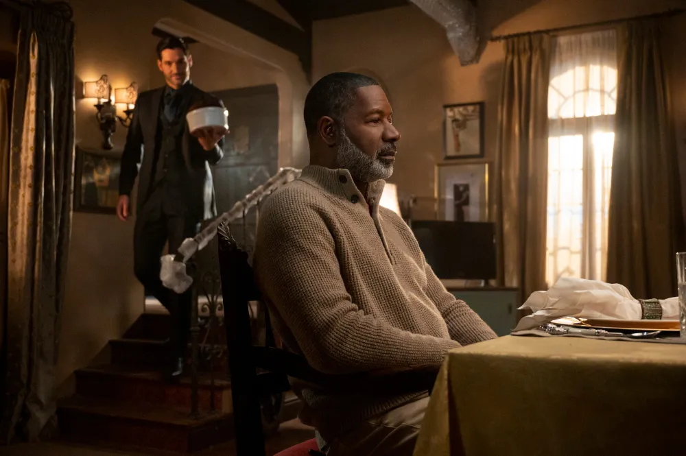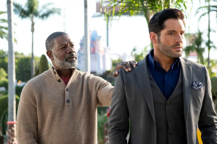 Dennis Haysbert as God and Tom Ellis as Lucifer Morningstar in a scene from ’Lucifer’. Picture: Netflix
