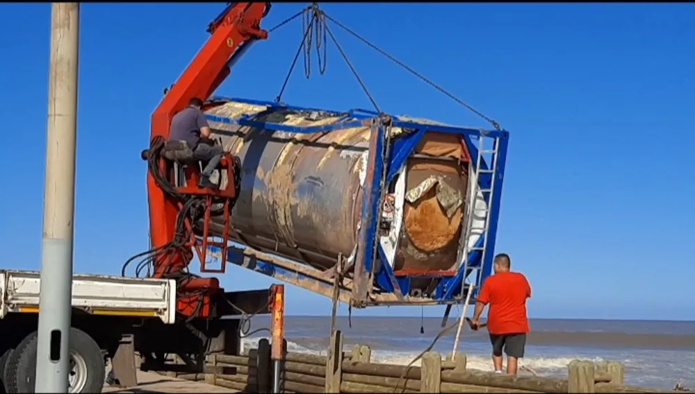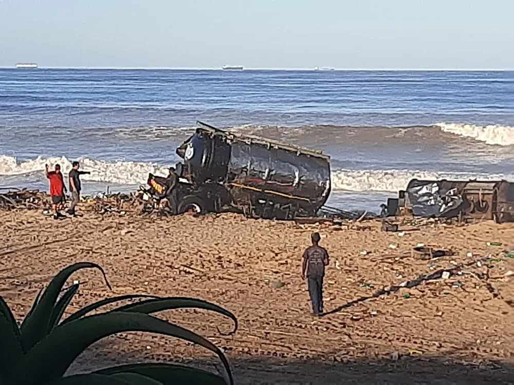 Crowds gathered to watch Shaun Gordini and his salvage team remove two tankers. One was set in a frame that would have made it fit on transport like a container, and was on the beach close to the pier at Blue Lagoon. The other, on a trailer with wheels, was on Thekwini Beach.
