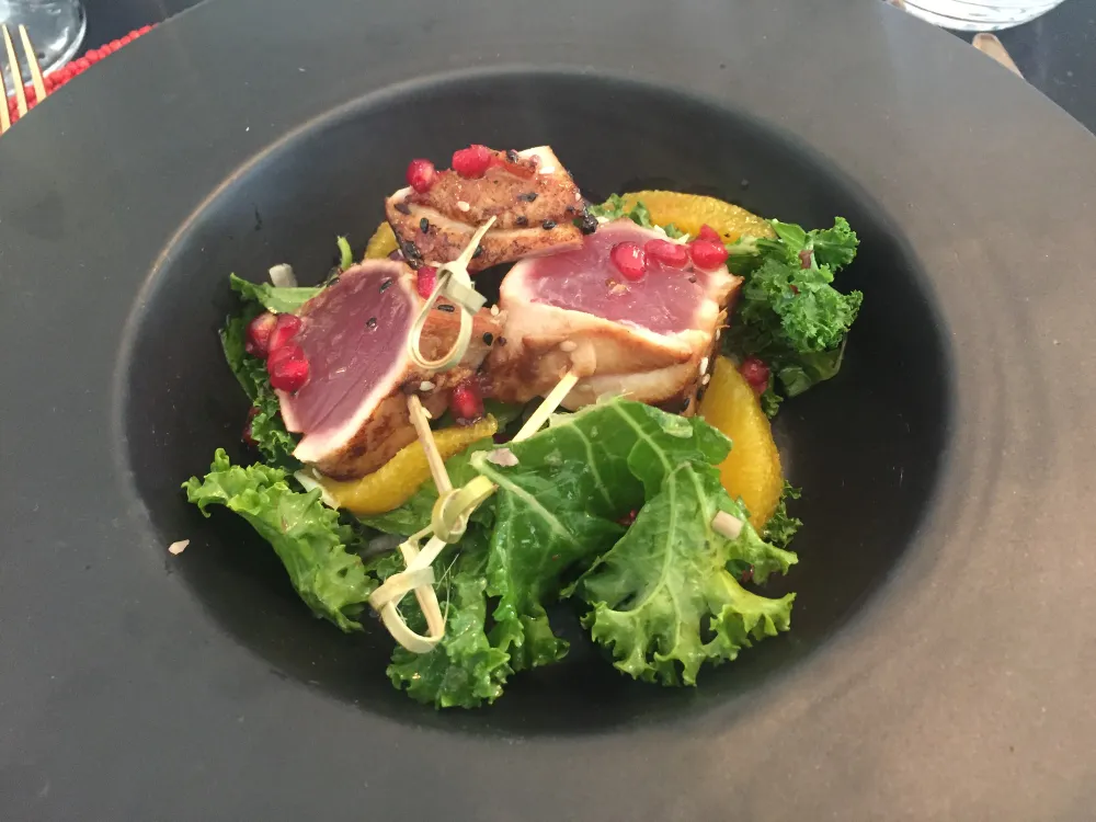 Siba's seared tuna bites with kale and pomegranate salad Picture: Megan Baadjies