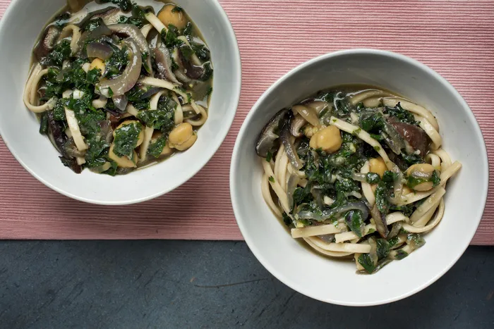 Udon With Shiitakes and Kale in Miso Broth. PICTURE: Deb Lindsey for The Washington Post. Udon With Shiitakes and Kale in Miso Broth. PICTURE: Deb Lindsey for The Washington Post.