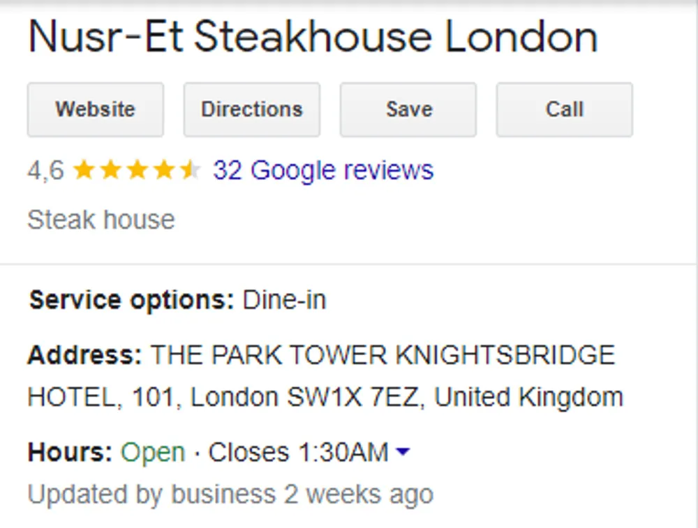 “Unbelievable food, the best steak I've had in London. Salt Bae is awesome, very cool having him serving you food.”