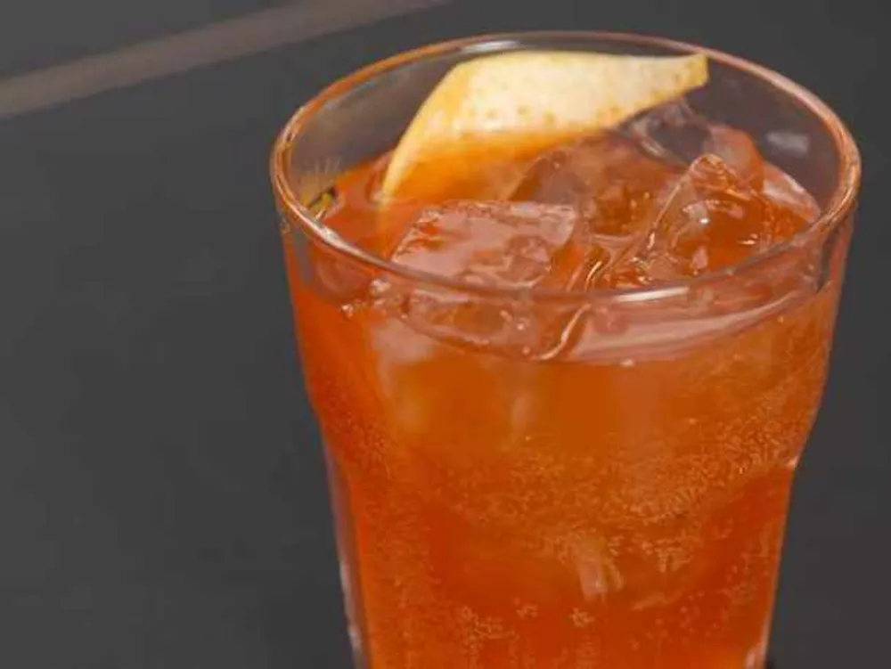 To assemble the mocktail, add 15ml of the reduced Aperol to a glass with ice.