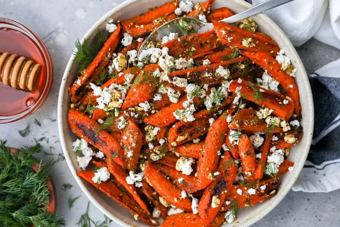 Carrots on their own can seem boring, but there are so many ways to cook with them. For example, take this honey-roasted carrot with feta and dill recipe by recipe developer and photographer Caitlin Prettyman, it is simple, tasty and makes the perfect side dish.