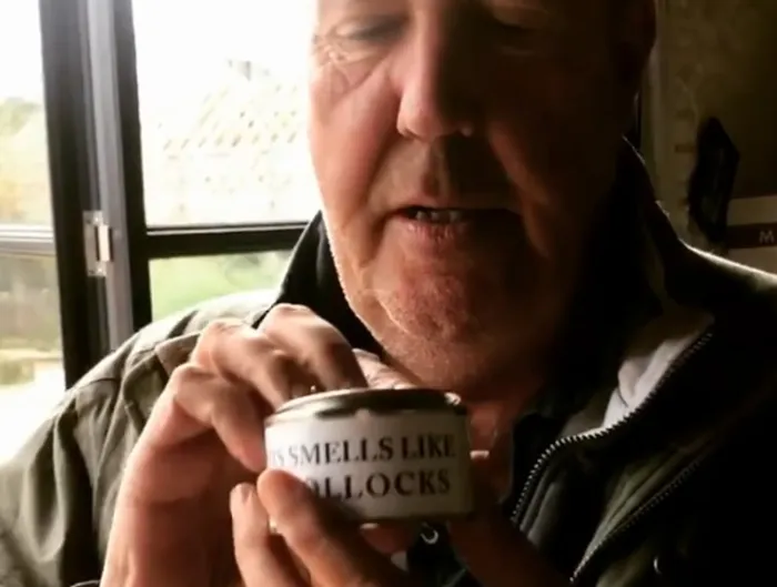 Taking a sniff of the candle, Clarkson says “the great smell of scrotum”.