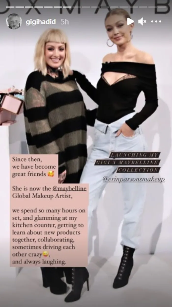 Gigi also heaped praise on Erin for working her way up from an assistant to Maybelline's Global Make-Up Artist.