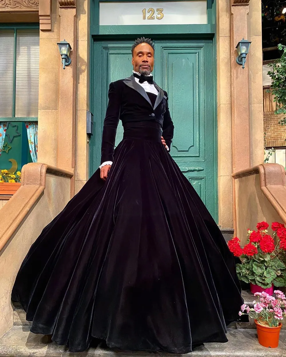 Now, looking at his outfits, we noticed that he draws inspiration from American singer and actor Billy Porter.