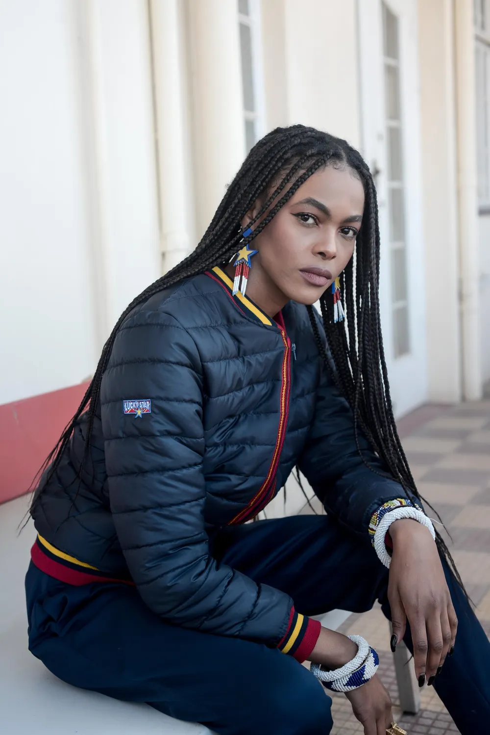 South African designer Maria McCloy has partnered with a food brand, Lucky Star, to release a limited-edition collection of jackets and accessories.
