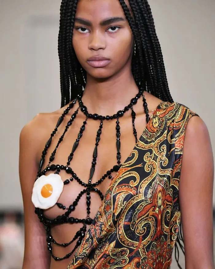 A few years ago one would never see a model’s breasts on the runway but these days it’s become common to not only see their breasts, but their nipples as well.