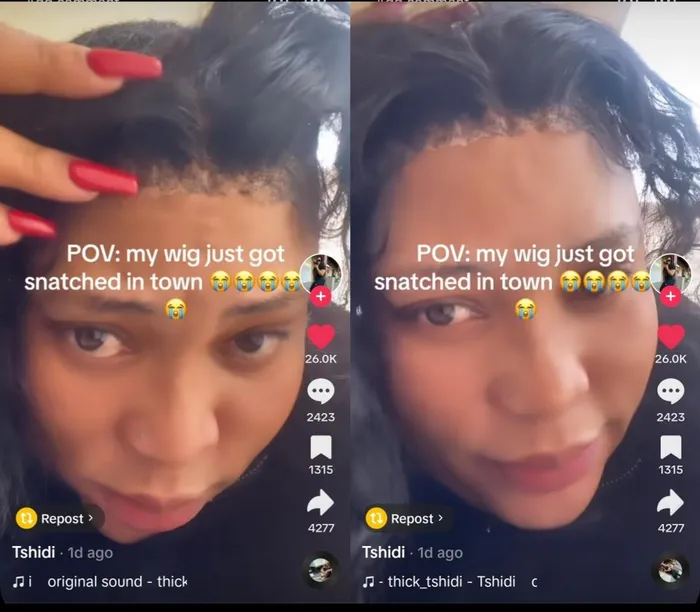 Tiktoker thick_tshidi took to the popular video app to tell folks that she had her wig snatched from her head in Johannesburg CBD.