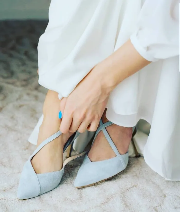Why not wear blue shoes under the billowing skirt of your wedding dress?