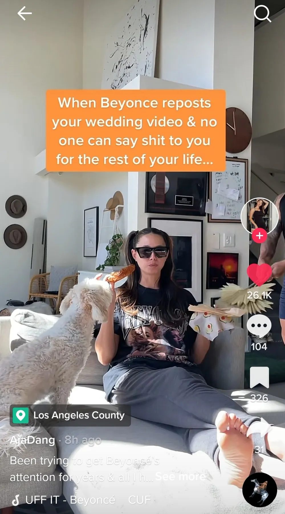 While on her TikTok account she posted a video saying, “When Beyonce reposts your wedding video & no one can say s*** to you for the rest of your life …”