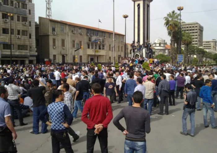 People gather during a demonstration in the Syrian city of Homs. Thousands have demanded the overthrow of Syrian President Bashar al-Assad. People gather during a demonstration in the Syrian city of Homs. Thousands have demanded the overthrow of Syrian President Bashar al-Assad.