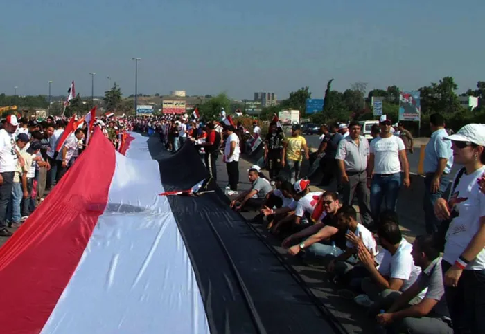 In this photo released by the Syrian official news agency SANA and according to them, thousands of supporters of Syrian President Bashar Assad, carry a gigantic 17,500 yards (16,000 meters) Syrian flag during a pro-Assad demostration, in the Mediterranean city of Latakia, northewest of Damascus, syria, on Sunday July 10, 2011. Leading Syrian opposition figures and prominent activists have shunned government-sponsored reform talks, saying they will not participate as long as the regime ruthlessly cracks down on protesters. The regime of the family dynasty of President Bashar Assad is grappling with a four-month-old anti-government uprising, using a mix of violence and promises of reform to quell the nationwide demonstrations. (AP Photo/SANA) EDITORIAL USE ONLY In this photo released by the Syrian official news agency SANA and according to them, thousands of supporters of Syrian President Bashar Assad, carry a gigantic 17,500 yards (16,000 meters) Syrian flag during a pro-Assad demostration, in the Mediterranean city of Latakia, northewest of Damascus, syria, on Sunday July 10, 2011. Leading Syrian opposition figures and prominent activists have shunned government-sponsored reform talks, saying they will not participate as long as the regime ruthlessly cracks down on protesters. The regime of the family dynasty of President Bashar Assad is grappling with a four-month-old anti-government uprising, using a mix of violence and promises of reform to quell the nationwide demonstrations. (AP Photo/SANA) EDITORIAL USE ONLY