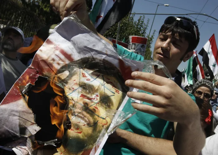 Syrians living in Greece burn a poster of Iranian President Mahmoud Ahmadinejad as they protest in solidarity with anti-government protesters in Syria. Syrians living in Greece burn a poster of Iranian President Mahmoud Ahmadinejad as they protest in solidarity with anti-government protesters in Syria.