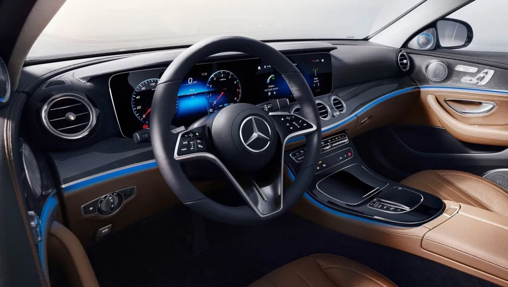 The German brand, one of many carmakers heavily researching an autonomous driving future, has not abandoned the analog, steering-wheel present. Arriving this year in the new E-Class range is a mostly round wheel (with a fashionable flat bottom edge on Sport models) that houses a dual-zone sensor that can detect if the driver’s hands are on it. Additional touch control sensors are incorporated into the spokes that activate digital signals for a variety of safety functions.