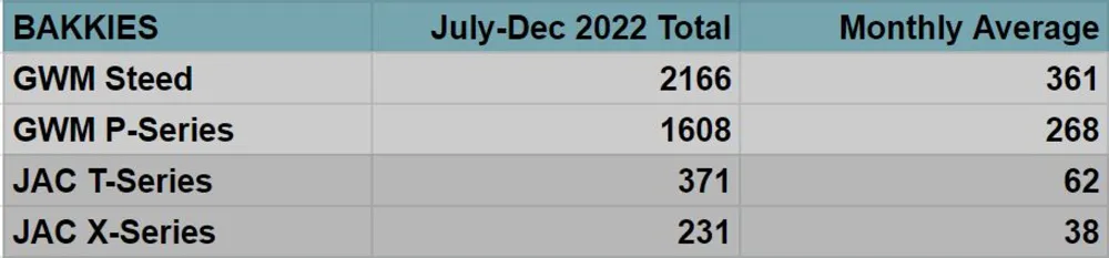 The country’s best-selling Chinese pick-up in H2 2022 was the GWM Steed, with a monthly average of 361 units putting it ahead of its more modern P-Series rival (which managed 268), and underlining the country’s need for more affordable bakkie options.