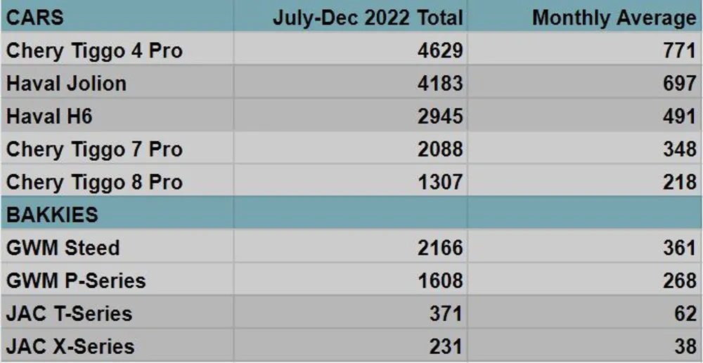 But how much of a dent are they really making? To get a clearer picture we compared the sales figures of the most popular Haval and Chery models from July to December 2022 (we would have done the full year but Chery didn’t release figures in the first half of the year).