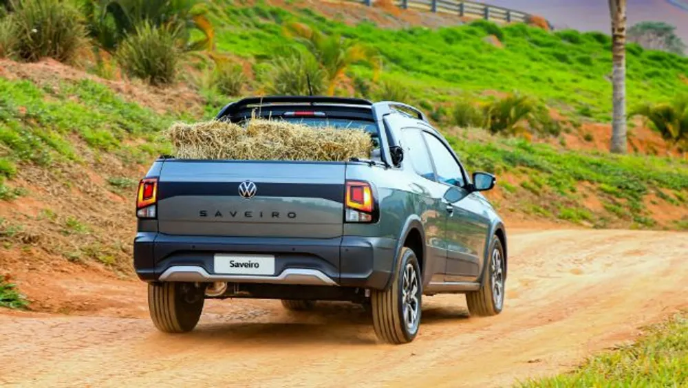 New taillights with a darkened design appear at the rear end, along with a new tailgate with Saveiro lettering on the top versions, and a redesigned bumper.