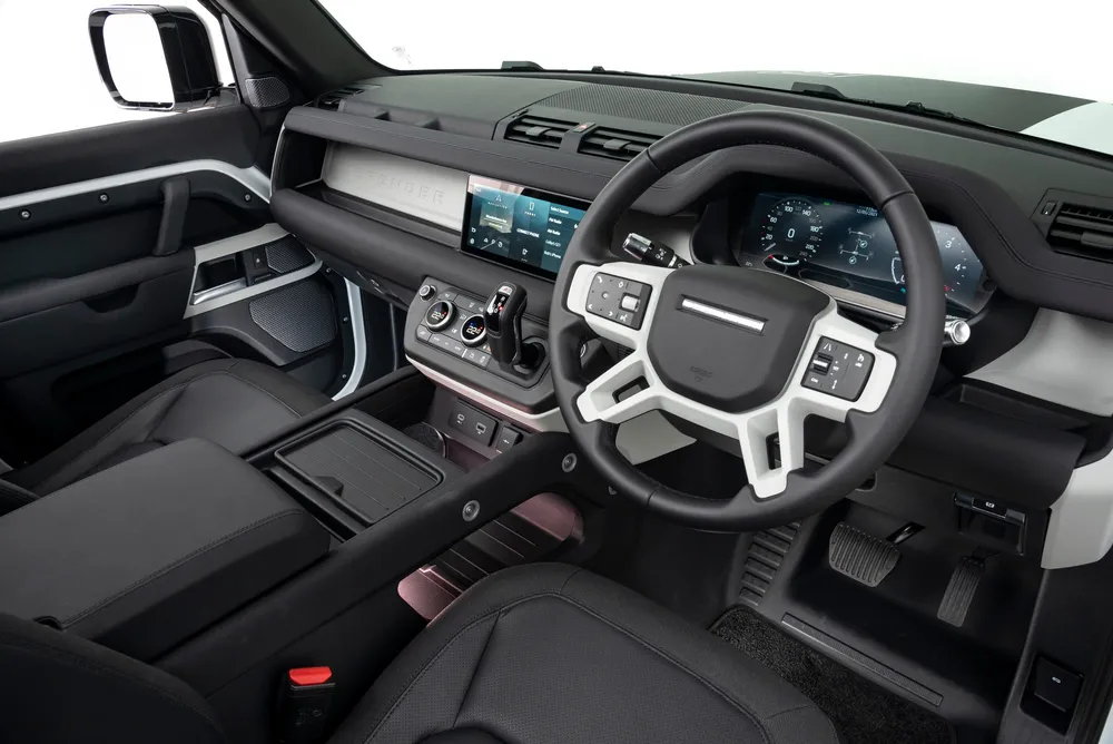 It’s the interior though that blows you away. Any comparison to the previous Defender is moot, one is almost prehistoric and the other sublime and completely digital with a touchscreen that shows you any number of options with its Inter Active Driver display depending on which mode you select.