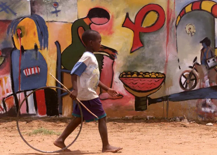 Concrete target: A boy walks past graffiti made to mark World Aids Day, outside a government building in Maputo, Mozambique. Picture: Themba Hadebe / AP Concrete target: A boy walks past graffiti made to mark World Aids Day, outside a government building in Maputo, Mozambique. Picture: Themba Hadebe / AP