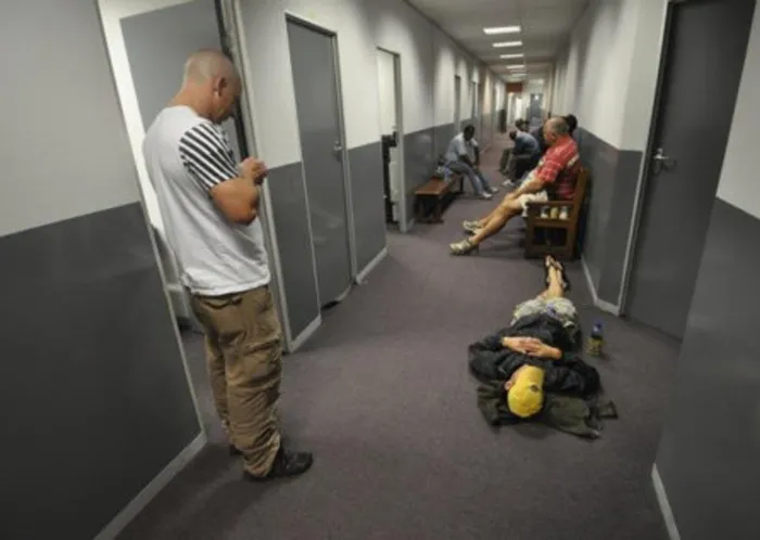 Officers of the disbanded Cato Manor Organised Crime Unit wait to be arrested at their offices on Tuesday night. While an officer is seen to be pacing the passage, amother seems to be sleeping on the floor while others site on the benches. Officers of the disbanded Cato Manor Organised Crime Unit wait to be arrested at their offices on Tuesday night. While an officer is seen to be pacing the passage, amother seems to be sleeping on the floor while others site on the benches.