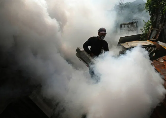 A health ministry worker discharges anti-mosquito spray as a preventive measure to control dengue fever in Sidoarjo, East Java, Indonesia. Experts say Asia and the South Pacific, home to 4.3 billion people or 60 percent of all humankind, faces rising risks from climate change that threaten food security, public health and social order. A health ministry worker discharges anti-mosquito spray as a preventive measure to control dengue fever in Sidoarjo, East Java, Indonesia. Experts say Asia and the South Pacific, home to 4.3 billion people or 60 percent of all humankind, faces rising risks from climate change that threaten food security, public health and social order.