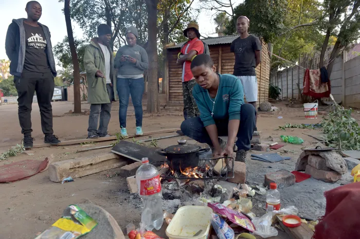 Scam victims with their belongings outside the bogus agency in Karen Park before they were taken to a safe haven at the Tshwane Event Centre. Pictures: Oupa Mokoena/ANA Pictures Scam victims with their belongings outside the bogus agency in Karen Park before they were taken to a safe haven at the Tshwane Event Centre. Pictures: Oupa Mokoena/ANA Pictures