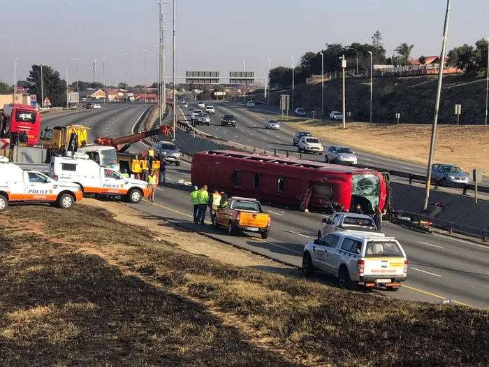 Motorists have been urged to use Kliprivier and Xavier Street offramp. There is a heavy traffic around where the bus overturned as police are clearing the scene.
