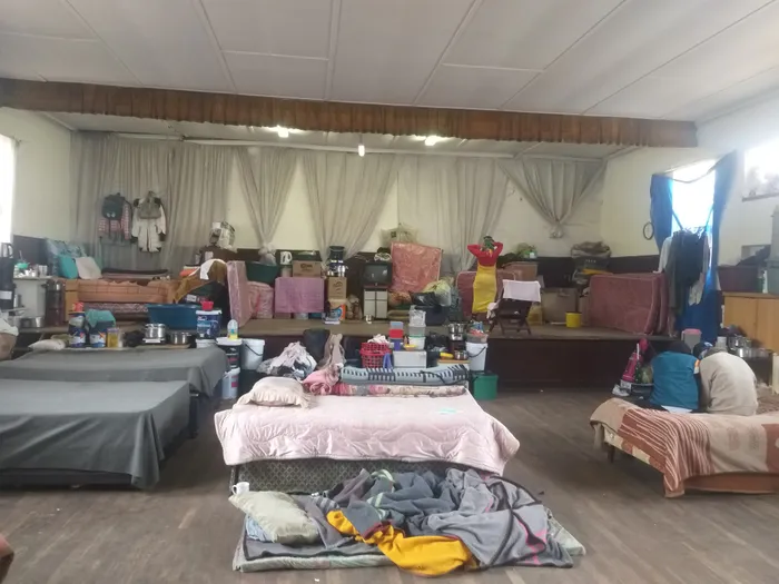 "Before I started living in the hall, I was at the nearby squatter camp (Boyseens). After it burnt several times early this year, I am now scared to go back and we were instructed to come to the hall by the councillor after a fire broke out again (and our shack burnt down).